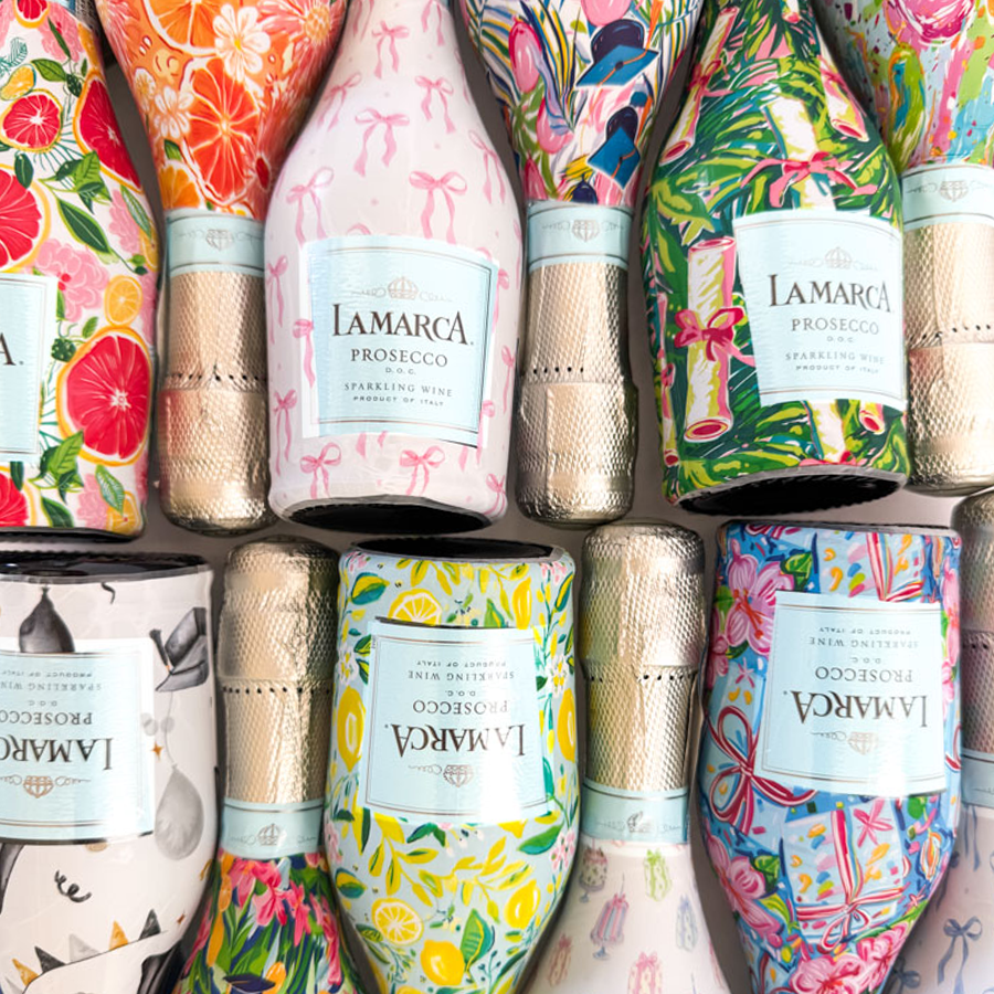 Elegant, custom-designed champagne bottle wraps...